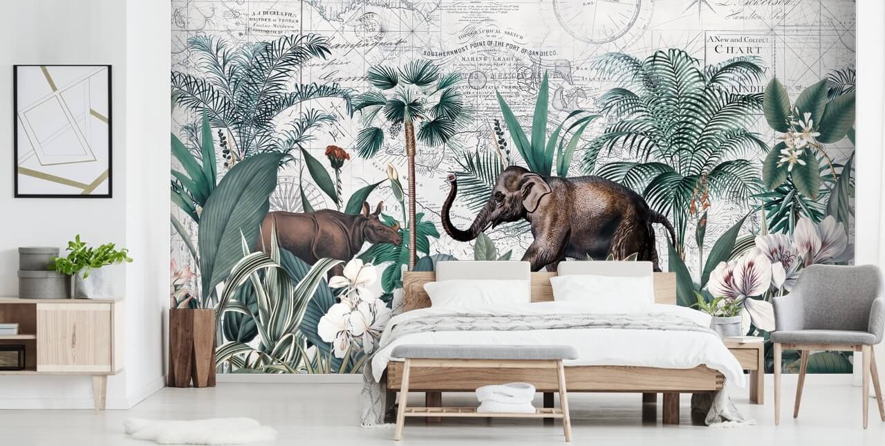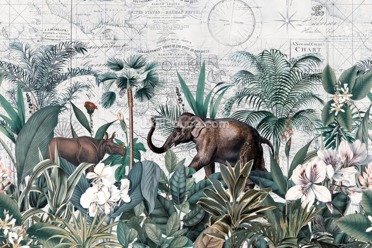 Creëer een prachtige feature wall in je huis met dit tropische Elephant Vintage Mapbehang. Op maat gemaakt om aan de muur te passen.