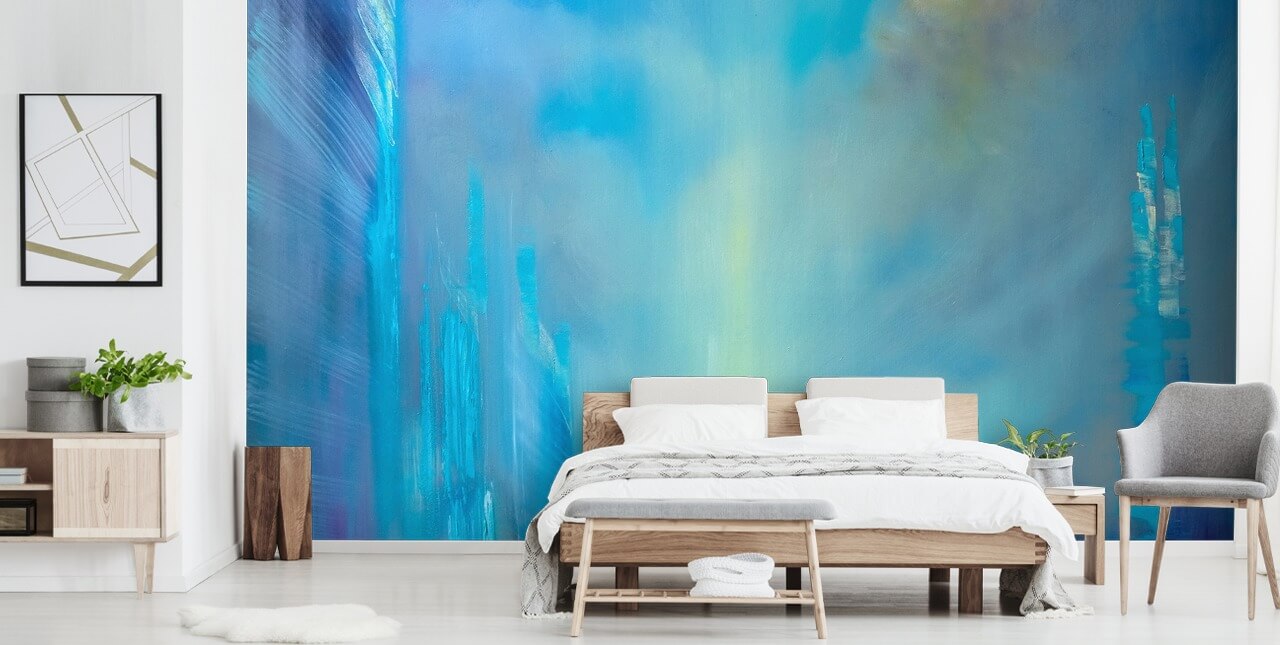 Vanwege de kalmerende tinten blauw raden we aan dit abstracte kunstbehang in je slaapkamer of lounge te installeren. Voel je kalm terwijl je afdrijft om te slapen of als je aan het chillen bent na een zware dag op het werk.