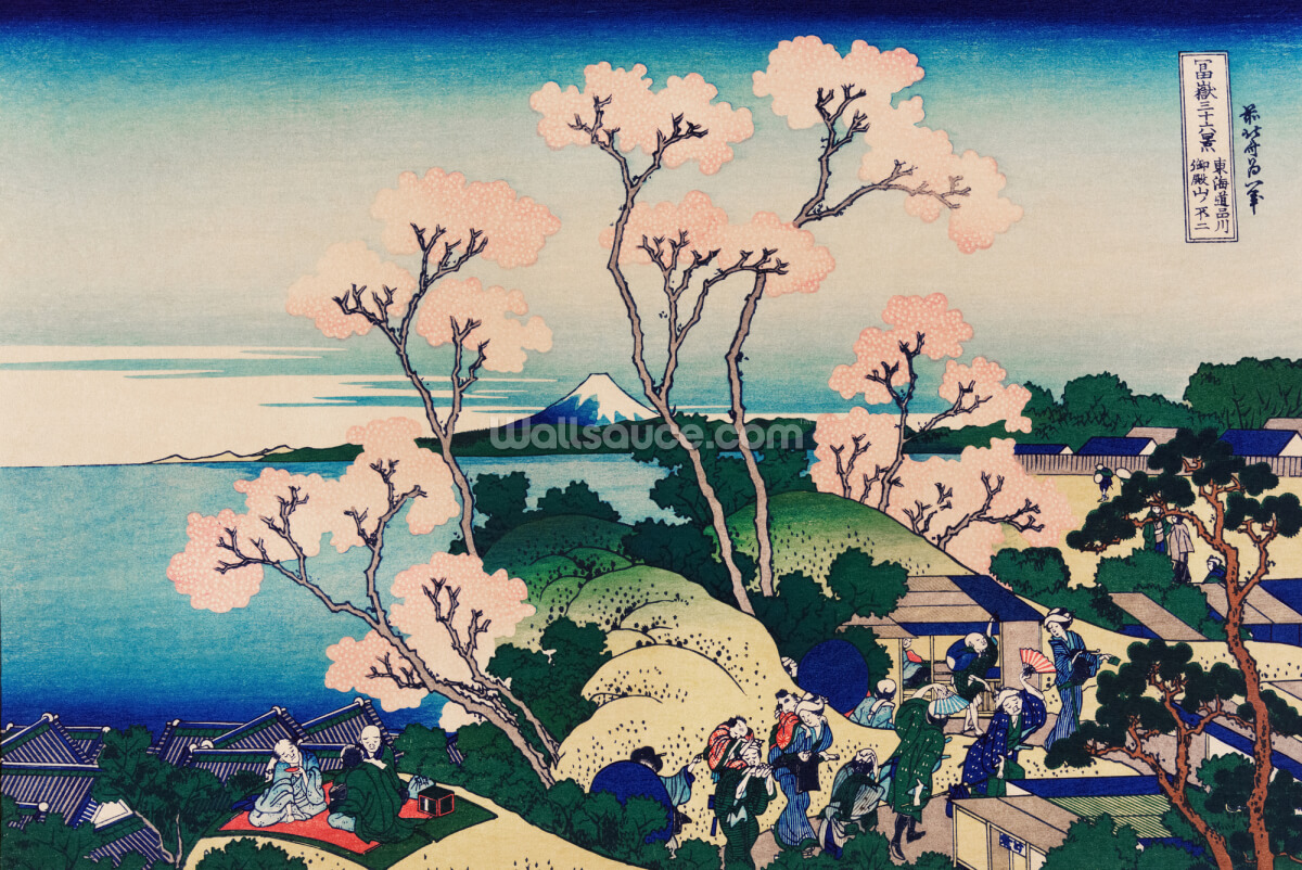 Deze Goten Yama Hill Shinagawa muurschildering brengt je naar een andere wereld. Kijk hoe de katoen-snoepbloesems in de bomen zwaaien en hoor het gebabbel van de mensen terwijl ze hun dagelijkse zaken doen.