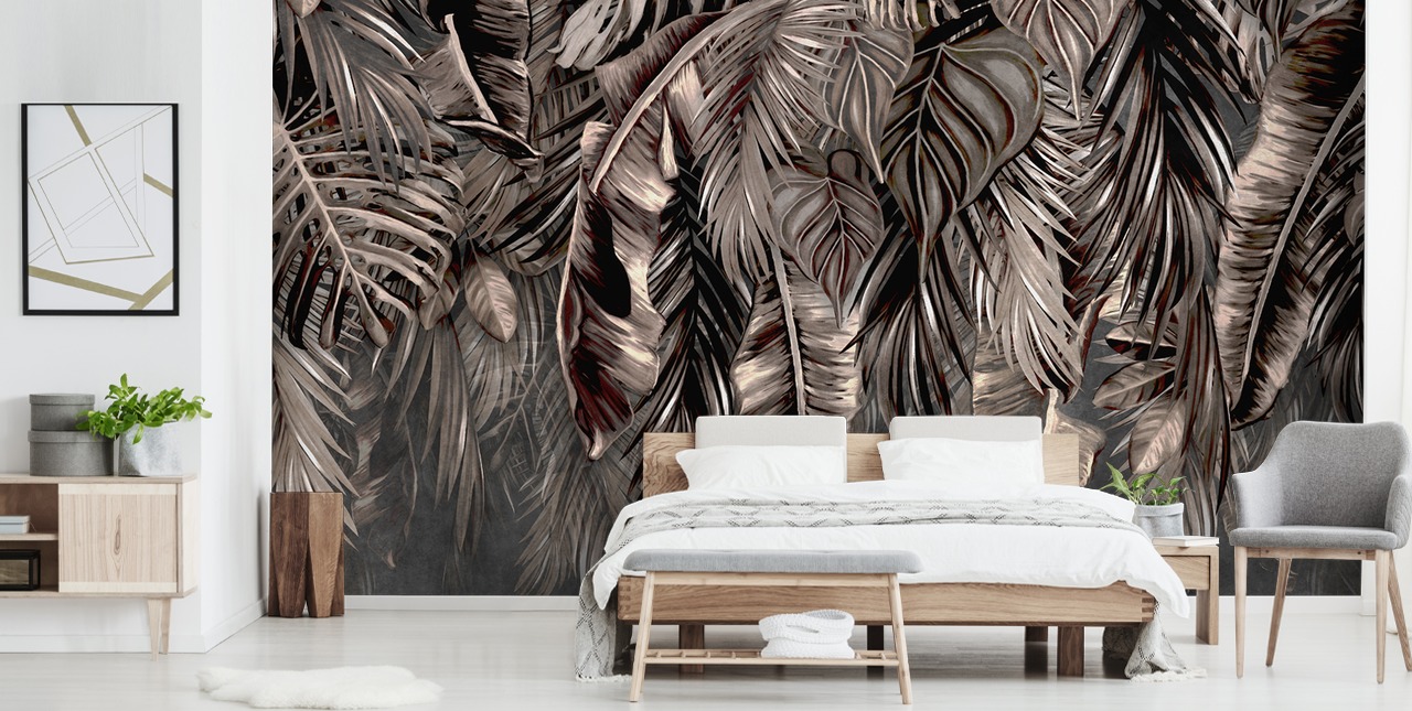 Wanneer je de Hanging Tropical Palm Trees Black muurschildering bestelt, raden we je aan een beetje extra aan de afmetingen van je muur toe te voegen, zodat het behang tot in de puntjes kan worden bijgesneden.