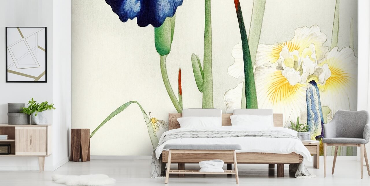 Wil je een eenvoudige feature wall in huis? Kies dan voor deze prachtige Irissen behangmuurschildering. Perfect voor een minimalistische slaapkamer, badkamer of woonkamer.