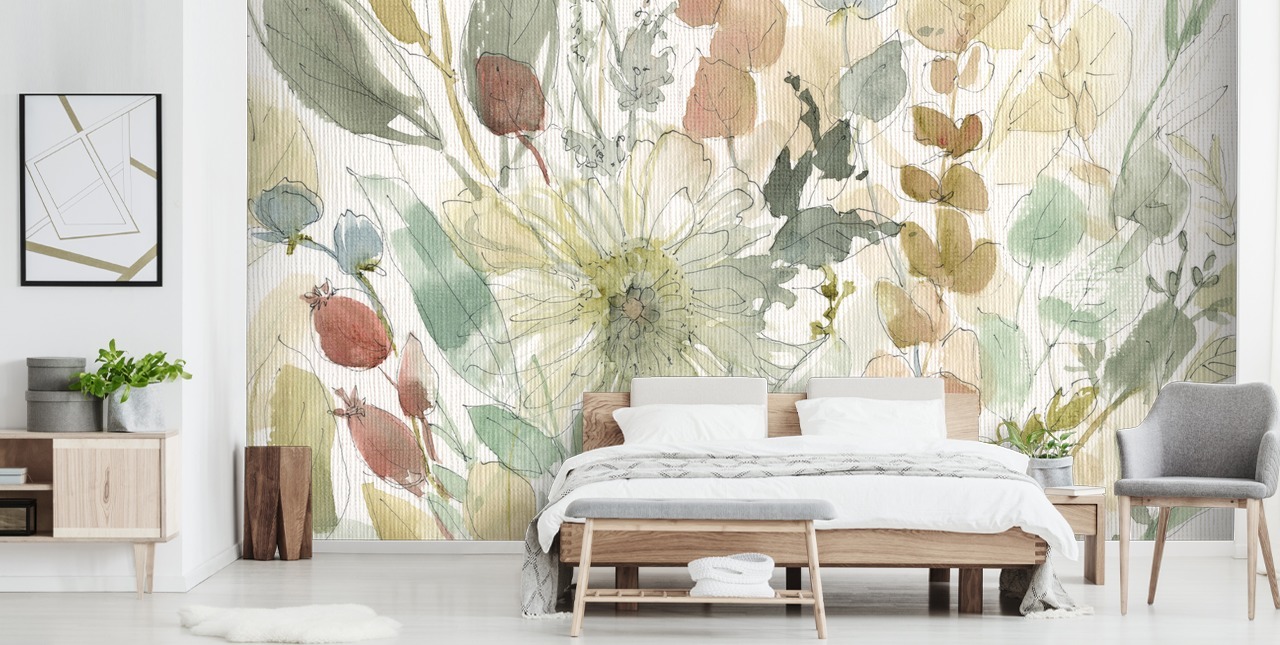 Linnen Wildflower - Pastelkleurig bloemenbehang