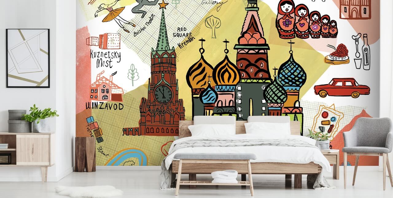Omarm je liefde voor Rusland met deze Moscow Travel muurschildering op maat van Wallsauce. Dit Russische behang zou er geweldig uitzien in een coole bar of de woonkamer of het thuiskantoor van een reisliefhebber!