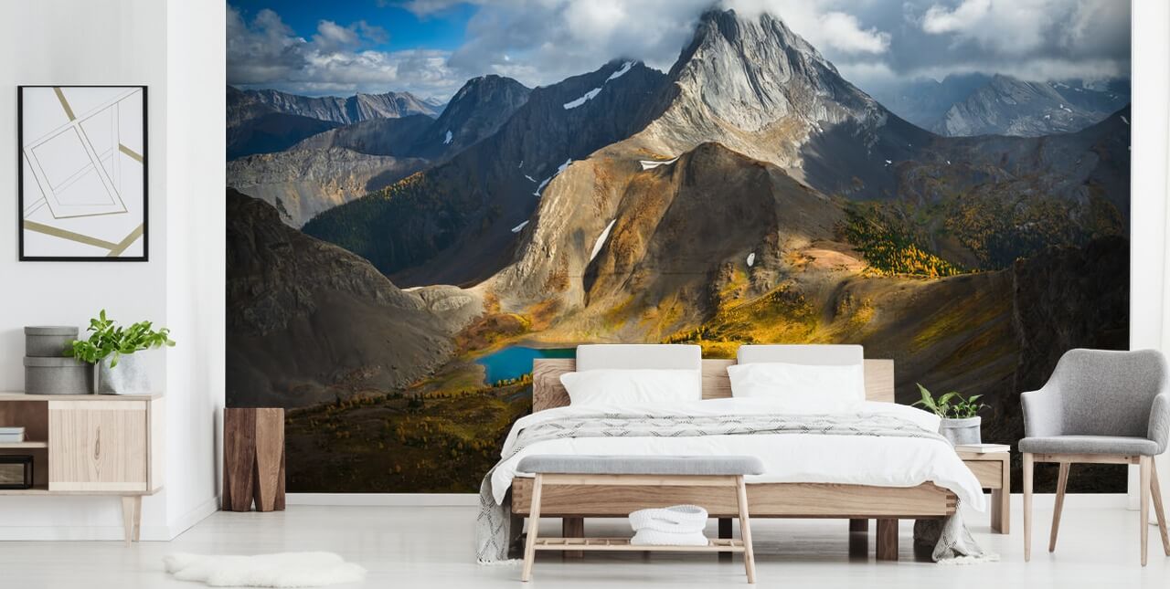 We denken dat dit prachtige bergbehang een fantastische muur zou zijn in elke kamer, zoals een woonkamer. Plaats dit landschapsbehang op de muur achter je bank, schilder de muren in een schaduw van gebroken wit en kies decor- en kameraccessoires in mosterdgeel, blauw, bruin en grijs.
