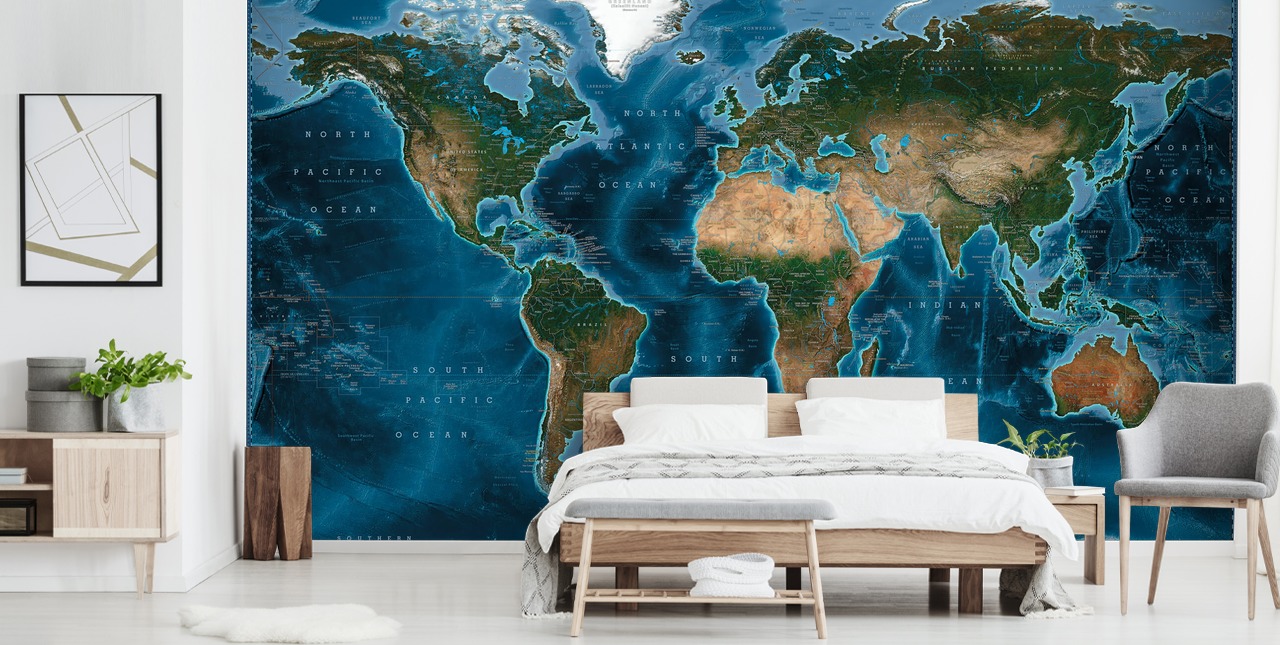 Koop deze fascinerende muurschildering met satellietkaarten van Ray & Co. Onze kaartachtergronden zijn op maat gemaakt en eenvoudig te installeren.