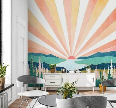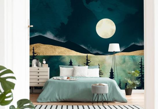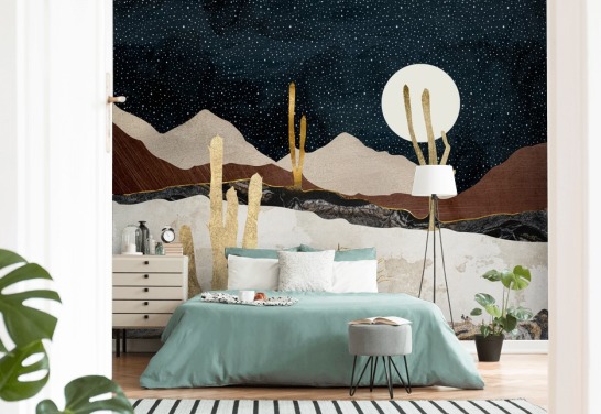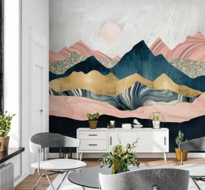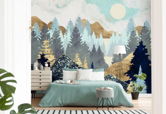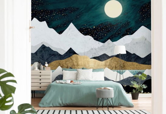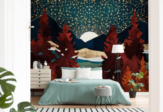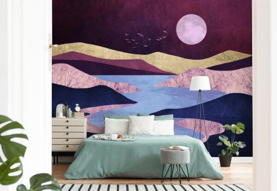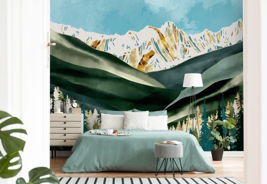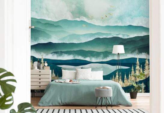 Of het nu je badkamer of slaapkamer is, transformeer je huis met een spectaculaire abstracte behangmuurschildering van SpaceFrog Designs.