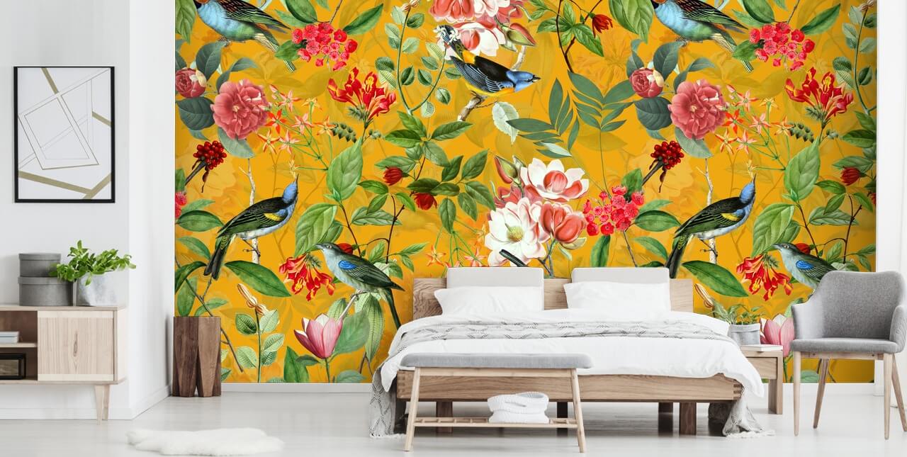 Sunny Exotic Bird Garden - Tropisch bloemenbehang