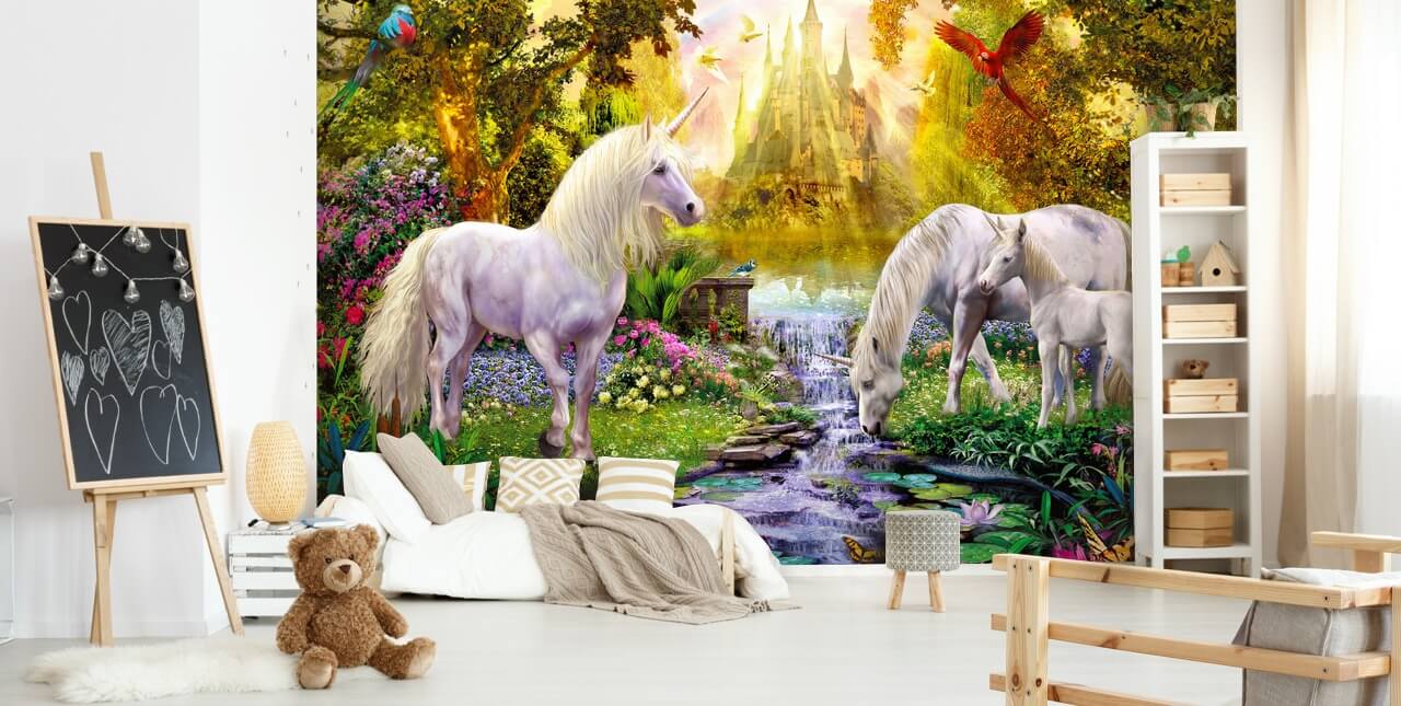 Hou je van eenhoorns? Bekijk deze op maat gemaakte muurschildering van The Castle Garden.