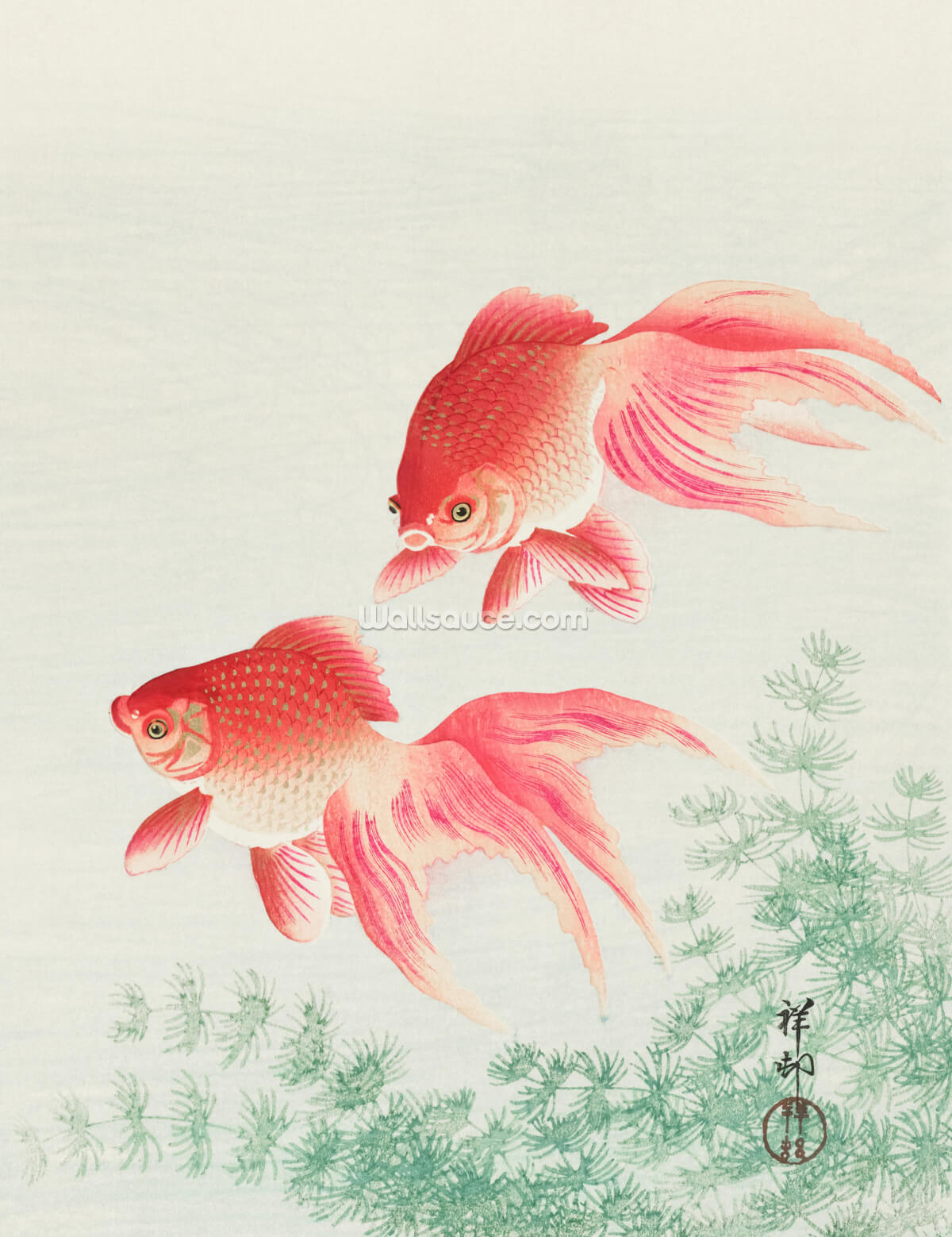 Als je een oosterse twist in huis wilt geven, hoef je alleen maar deze op maat gemaakte Two Veil Goldfish behangmuurschildering te kiezen.