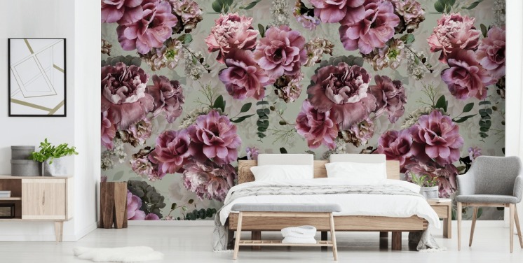 donkerroze bloemenbehang