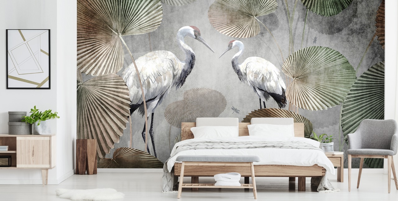 Verander een eenvoudige muur in iets spectaculairs met de Vintage Jungle Cranes Green behangmuurschildering boordevol persoonlijkheid. Het is een eenvoudige maar effectieve manier om de sfeer van een ruimte volledig te veranderen van saai naar briljant.