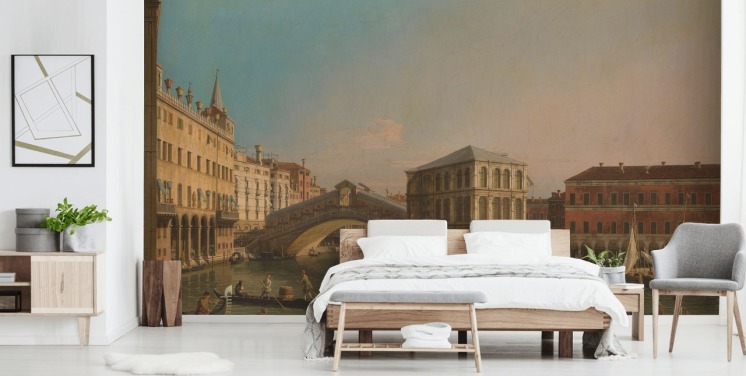 fine art behangmuurschildering genaamd Grand Canal (Rialtobrug) van Canaletto voor woon- en slaapkamers