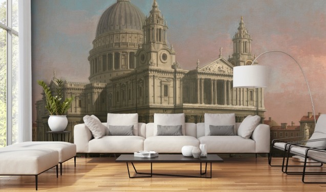 kunstbehangmuurschildering genaamd St. Paul's Cathedral van Canaletto voor thuiskantoren en slaapkamers