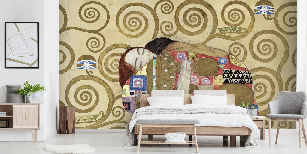 Toon uw waardering voor beeldende kunst met een op maat gemaakte Fulfillment behangmuurschildering van Gustav Klimt.