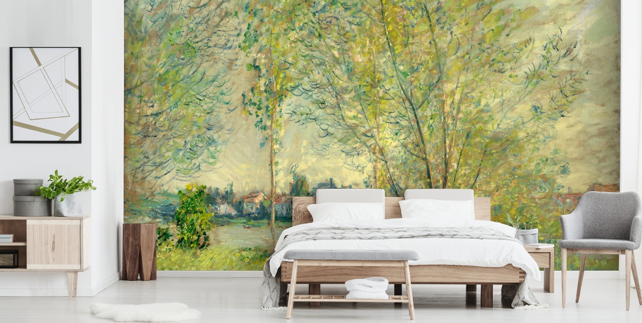 Breng beeldende kunst in uw huis of zakelijke inrichting met onze op maat gemaakte The Willows by Monet behangmuurschildering.