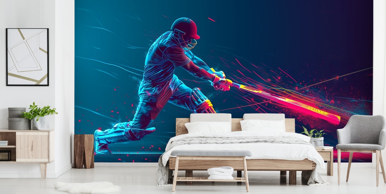 Breng karakter en kleur in de slaapkamer van elke cricketliefhebber dankzij onze geweldige Neon Cricket-muurschildering.