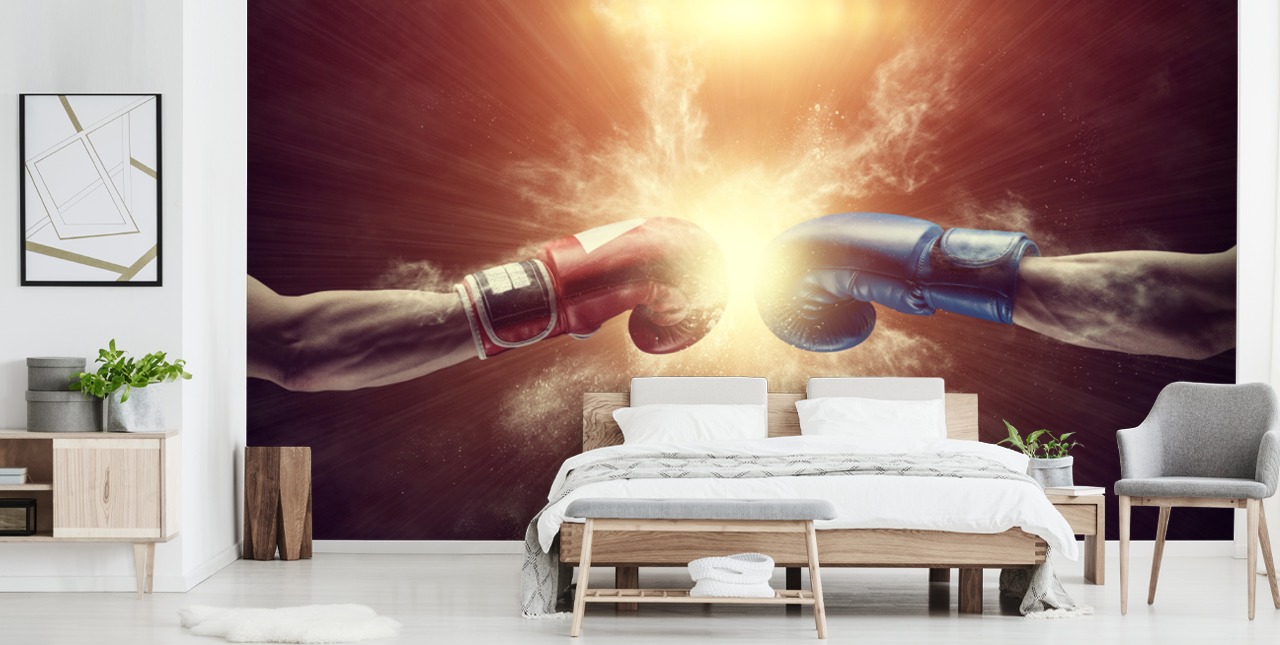 Het is het moment voordat een bokswedstrijd begint. Breng de intensiteit van de wedstrijd naar elke ruimte met Respect van Wallsauce.