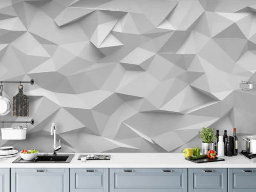 witte op maat gemaakte 3D-behangmuurschildering genaamd Polygon voor slaapkamers