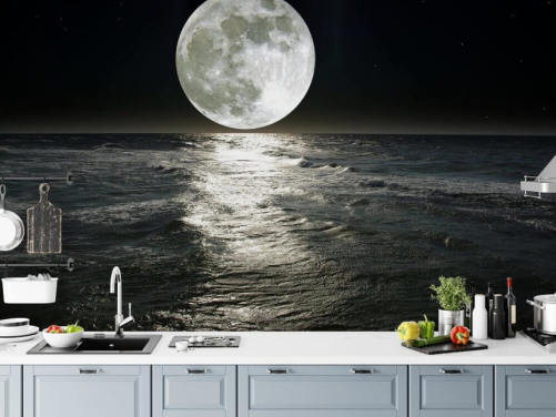 witte aanpasbare maanbehangmuurschildering genaamd Moon voor slaapkamers