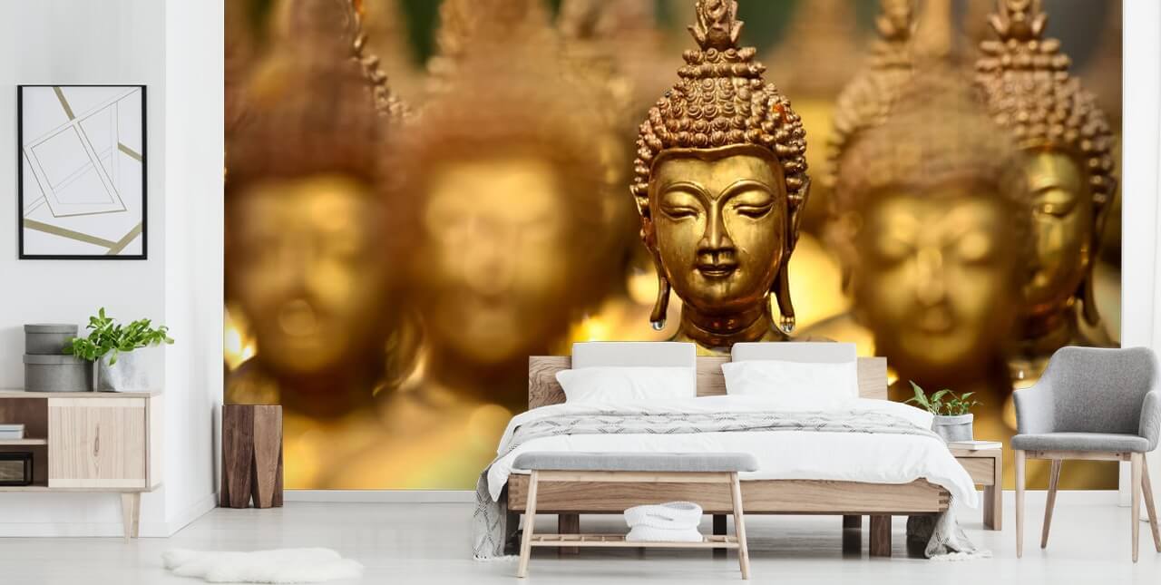 Prachtige muurschildering Boeddha beelden van Wallsauce. Dit hoogwaardige Boeddha beelden behang wordt op maat gemaakt. Eenvoudig te bestellen en te installeren .