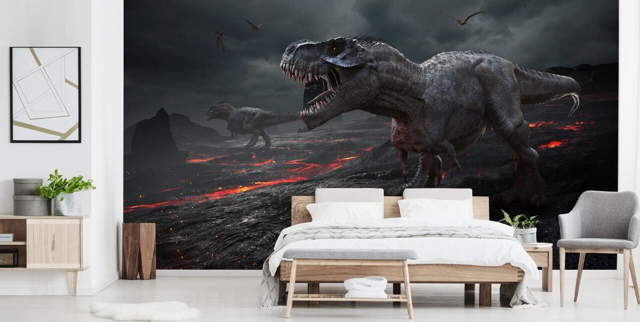 Installeer dit epische Dinosaurs Fire behang. Op maat gemaakt en geprint op een behang naar keuze.