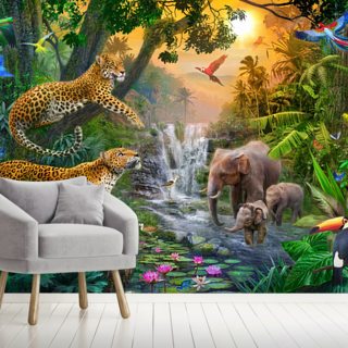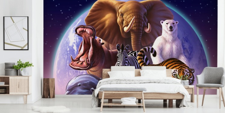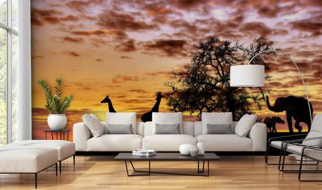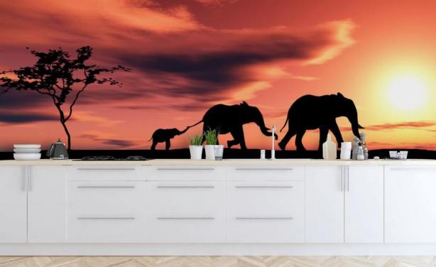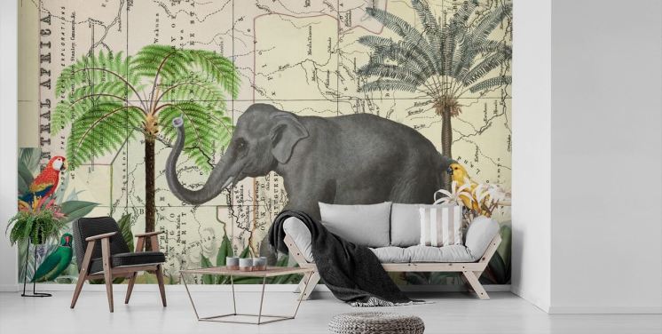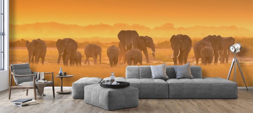 Breng de safari in huis met deze prachtige, majestueuze muurschilderingen met olifantenbehang.