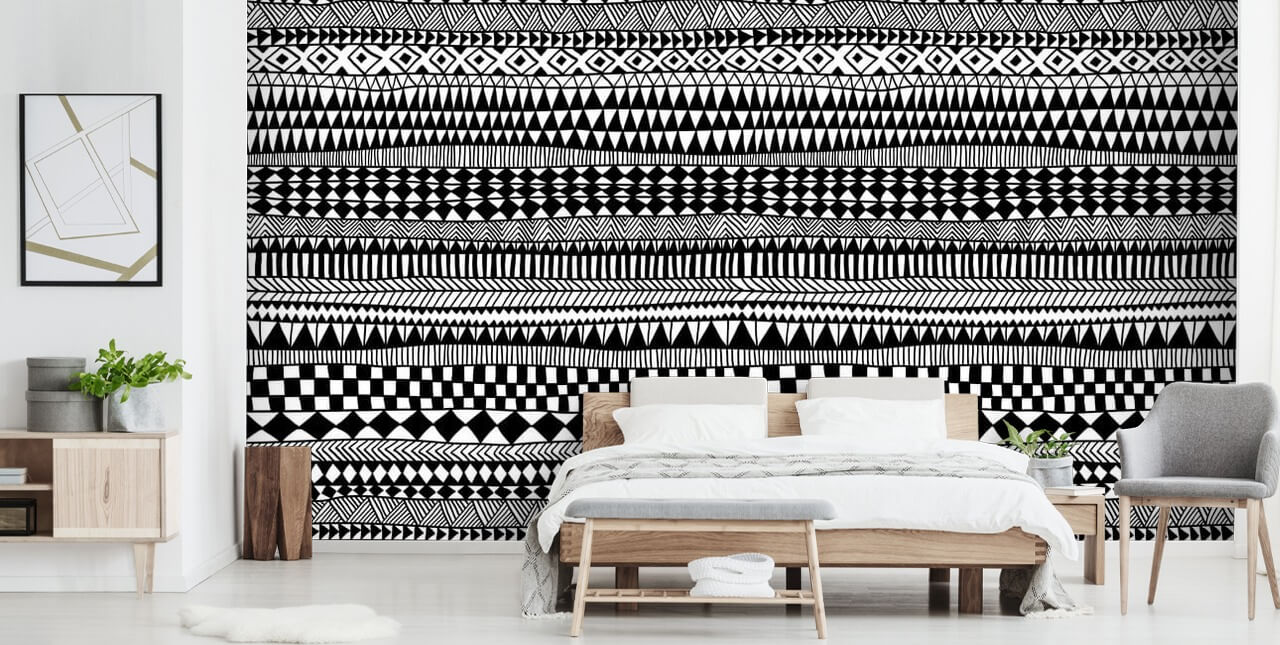 We denken dat dit zwart-witte behang er geweldig uit zou zien in een breed scala aan kamers. Waarom installeer je hem niet in je woonkamer? Plaats dit trendy tribale behang op de muur achter je bank en schilder de omringende muren in een kleur. Mosterdgeel, snoepfloss-roze of zelfs donkergroen zouden geweldige keuzes zijn!