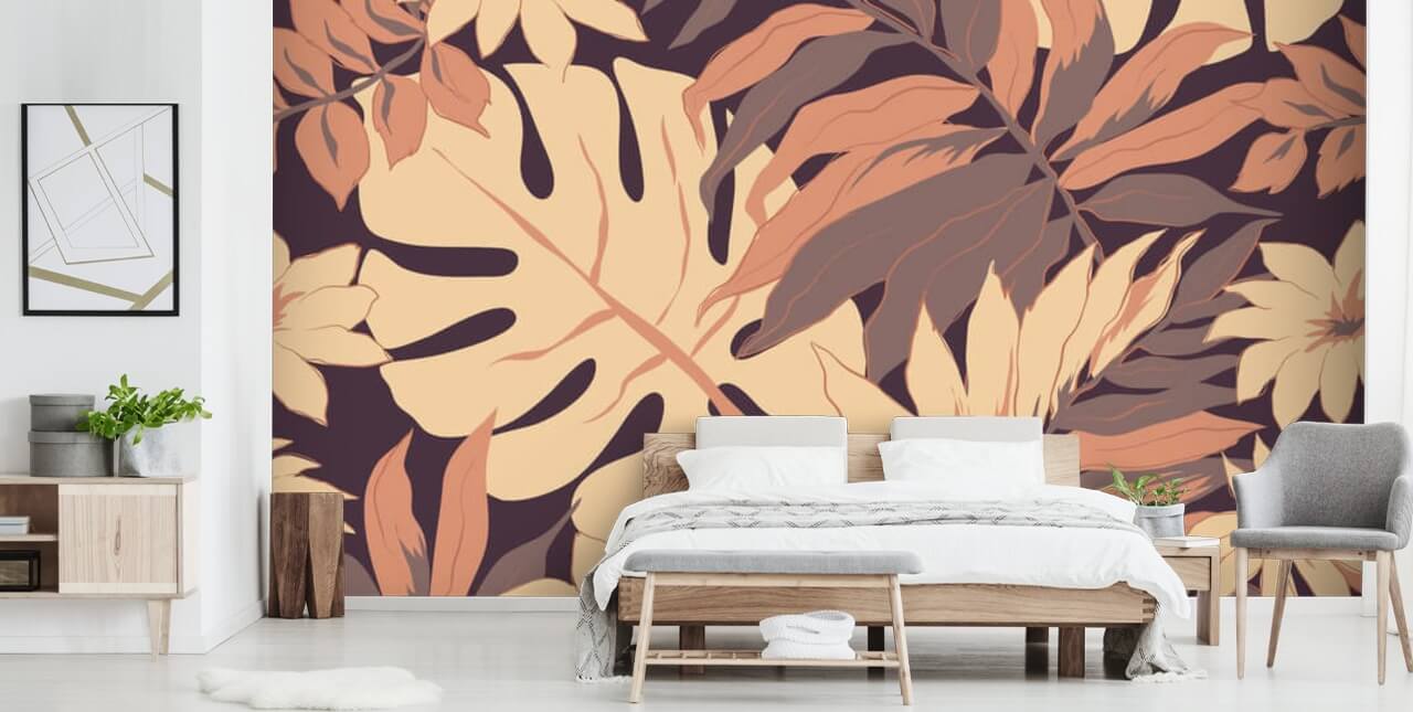 Hou je van tropisch behang? Kies dan voor deze geweldige Exotic Pink Leaves muurschildering van Wallsauce.com. Met levendige tinten oker en oranje denken we dat dit bladbehang een geweldig alternatief is voor de gebruikelijke groene bladachtergronden.