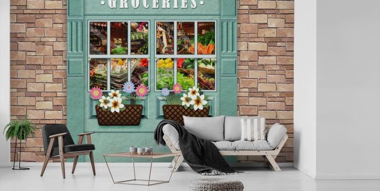 op maat gemaakte gevelbehangmuurschildering genaamd Groceries for care homes