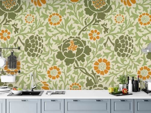 groen en oranje bloemenbehang