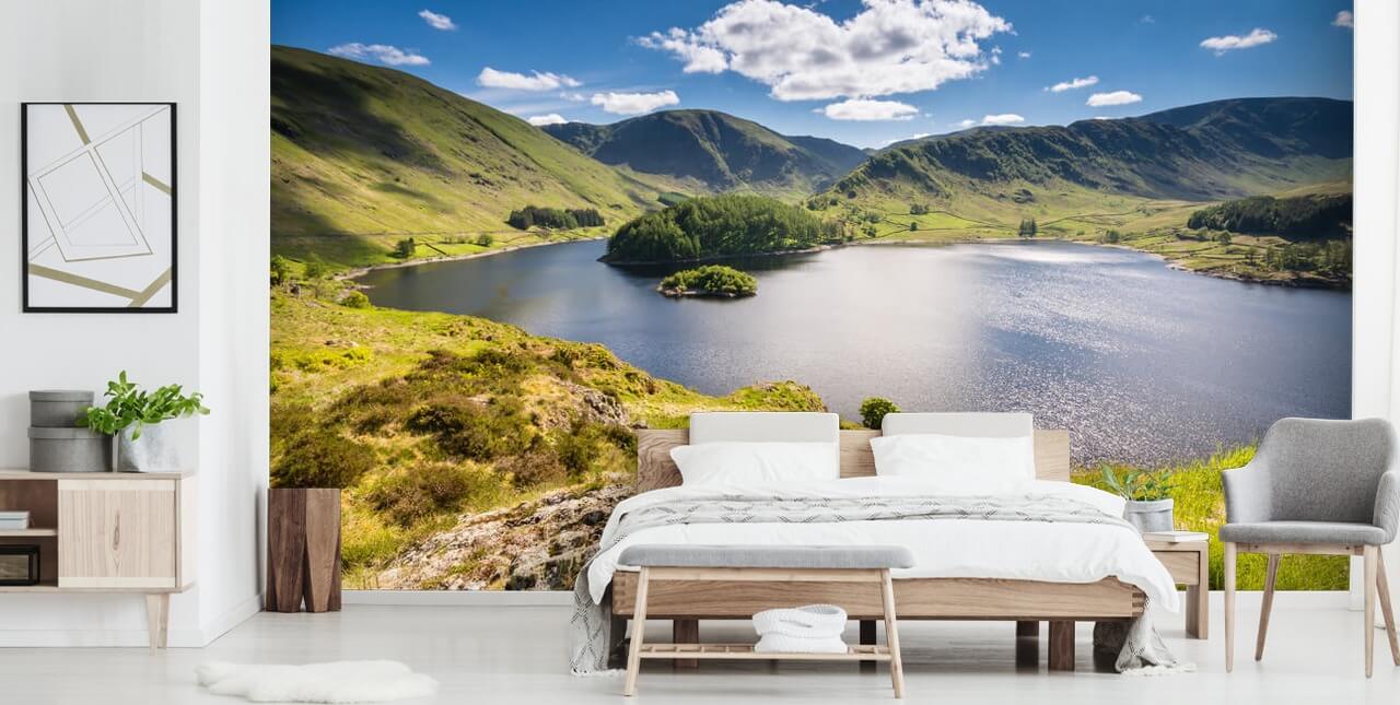Voel de zon op je gezicht schijnen in het Lake District met deze op maat gemaakte Haweswater van Whiteacre Crag behangmuurschildering.