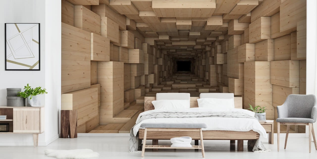 Kom dicht bij het spel met deze unieke Inside Jenga behangmuurschildering. Op maat gemaakt en eenvoudig te installeren.