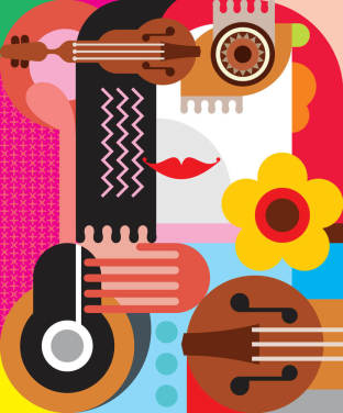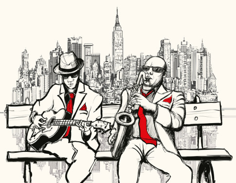 Verfraai uw interieur met een kleurrijke jazzmuurschildering. Geweldig voor huizen, bars en andere poppodia, onze collectie brengt de ziel van jazz naar elke kamer met een funky muurschildering op muziekbehang