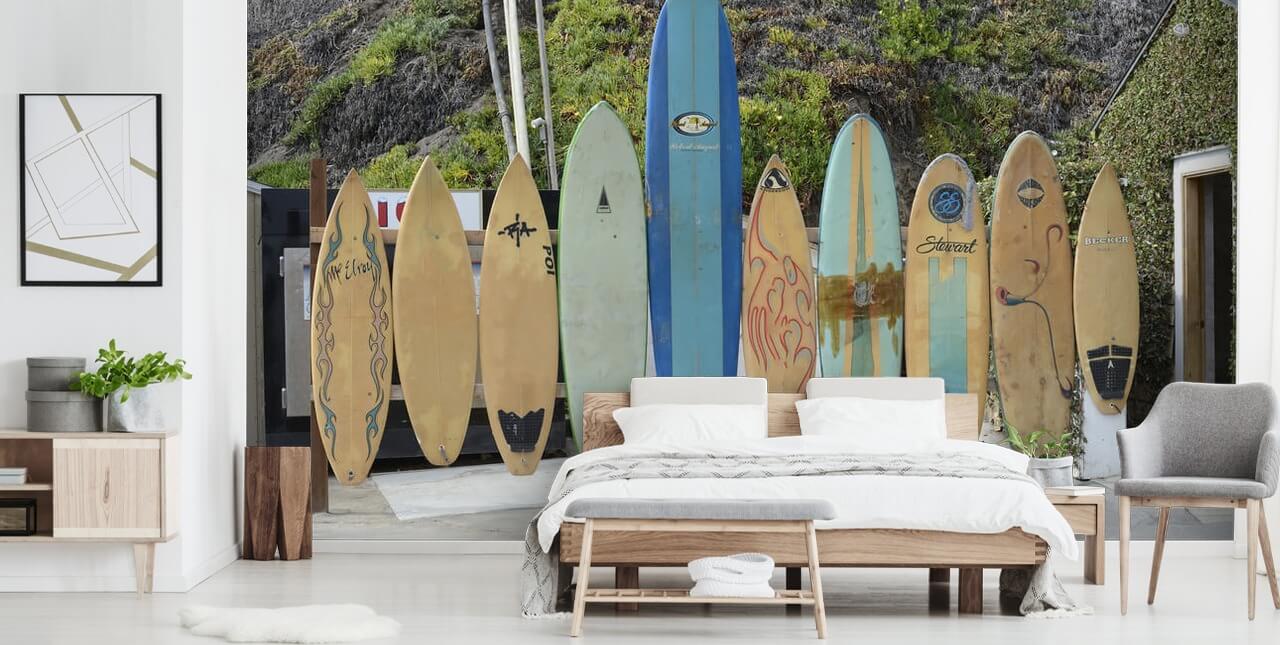 Hou je van surfen? Installeer dit op maat gemaakte Malibu Surfboards behang in uw huis.