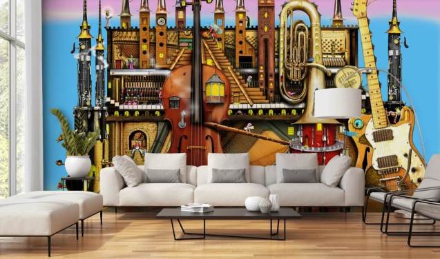 Muurschilderingen op muziekbehang
