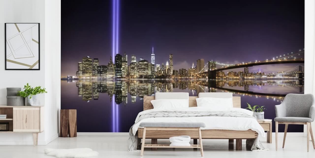 New York - Tribute Lights Brooklyn Bridge - Behang met thema New York