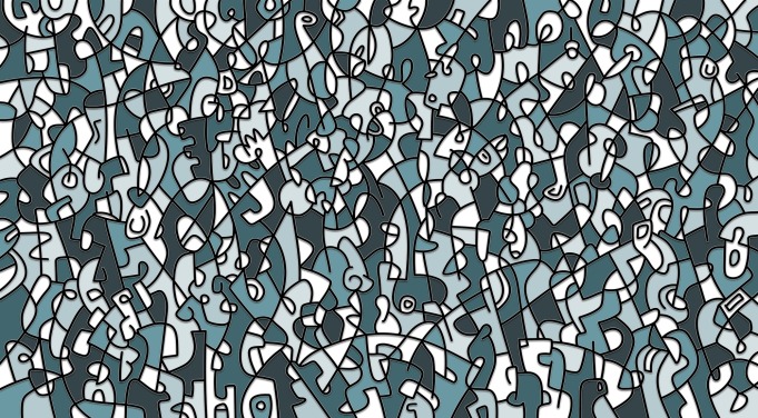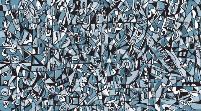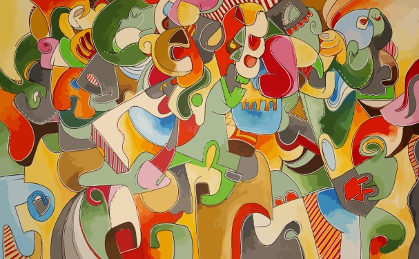 kleurrijke abstracte behangmuurschildering op maat genaamd Fooling Around van Shandra Smith voor kantoren