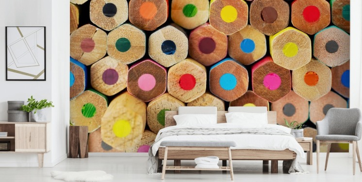 kleurrijke potloodmuurschildering voor kinderen genaamd Pencil Pattern voor kinderdagverblijven, scholen en kinderkamers