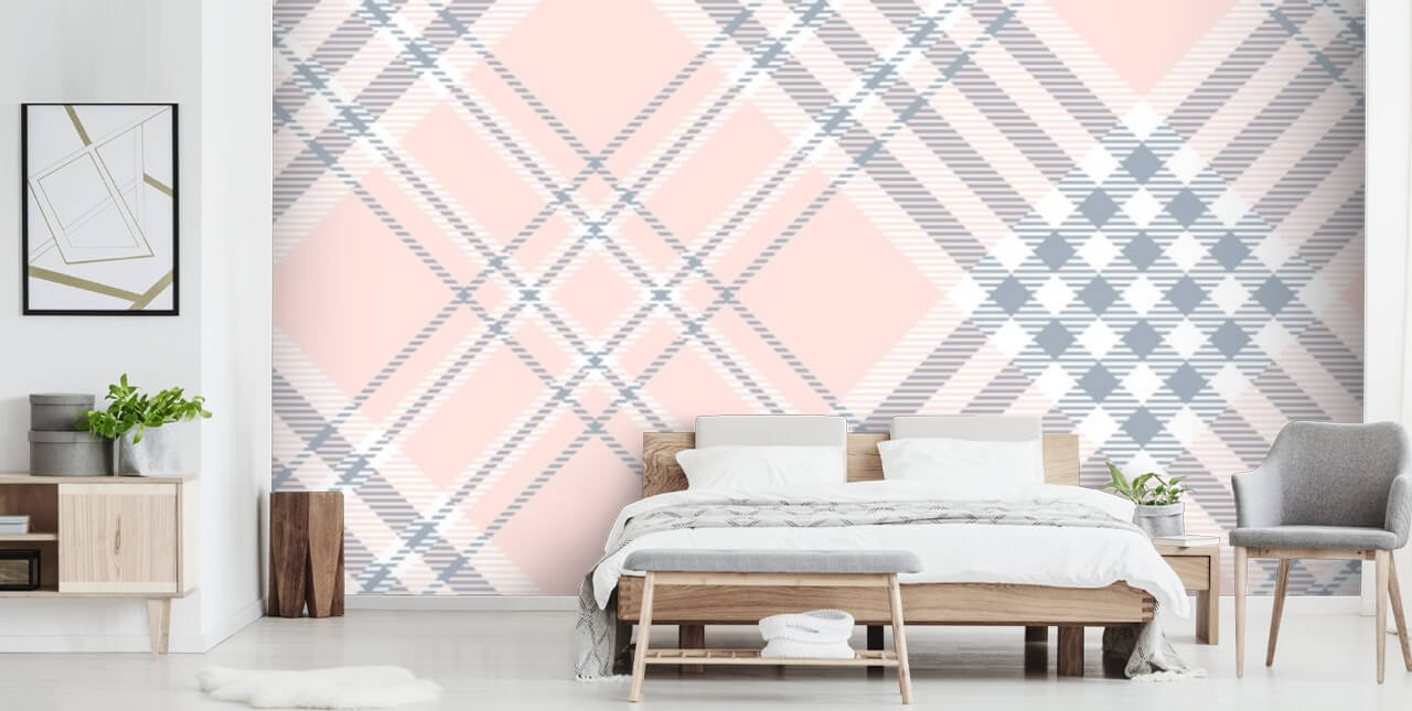 Als je een traditionele muur in huis wilt, kies dan voor dit roze en grijze behang. Een prachtig tartan behang, we denken dat het verder zou kijken dan mooi in de slaapkamer van een meisje. Of het nu een kinderkamer, tween of een slaapkamer voor volwassenen is, we denken dat dit roze pastelbehang er fantastisch uit zou zien in combinatie met gebroken wit geschilderde omringende muren, wit beddengoed en roze en grijze scatterkussens. Kies een grijs tapijt om je tenen in te knuffelen en een pluizig wit schapenkleed voor naast je bed!