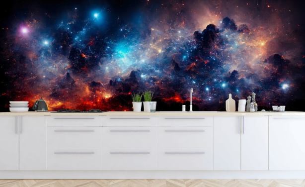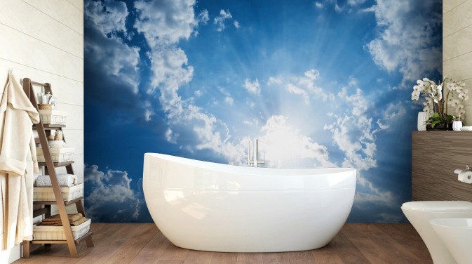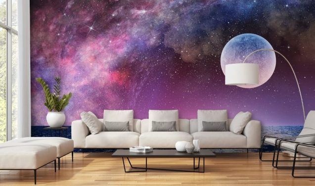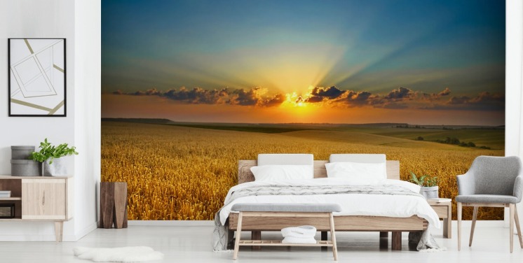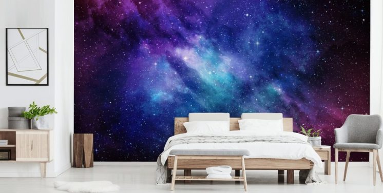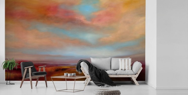 Ga in een tarweveld liggen en kijk omhoog naar de zomerhemel, tel de sterren terwijl je slaapt onder de nachtelijke hemel of zweef in een kalme zee terwijl je de rijke, robijnrode zon achter de horizon ziet vallen. Er zijn zoveel ontzagwekkende muurschilderingen met hemelbehang om uit te kiezen.