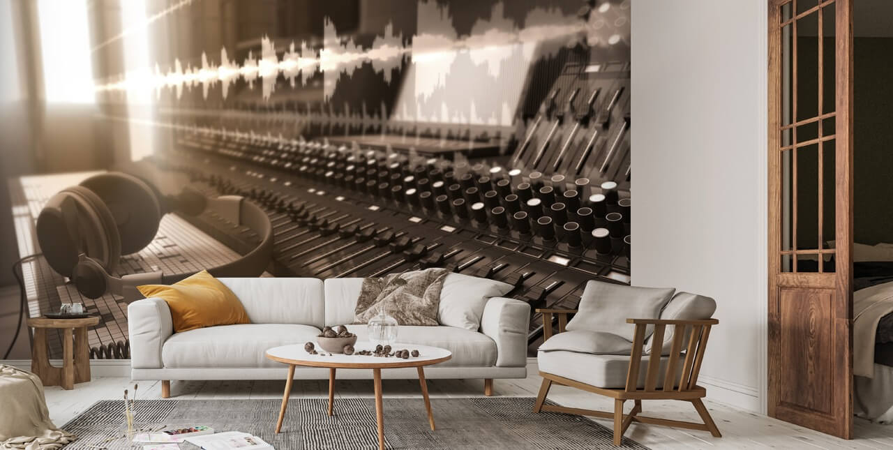 Sound Studio Wallpaper Mural van Wallsauce, breng het muzikale randje aan je project. allemaal op maat gemaakt op maat met wallsauce