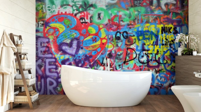kleurrijke op maat gemaakte graffitibehangmuurschildering genaamd Graffiti - Straat voor tienerkamer