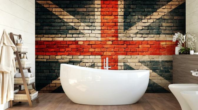 union jack aanpasbare vlag behangmuurschildering genaamd Union Jack on Old Brick voor slaapkamers