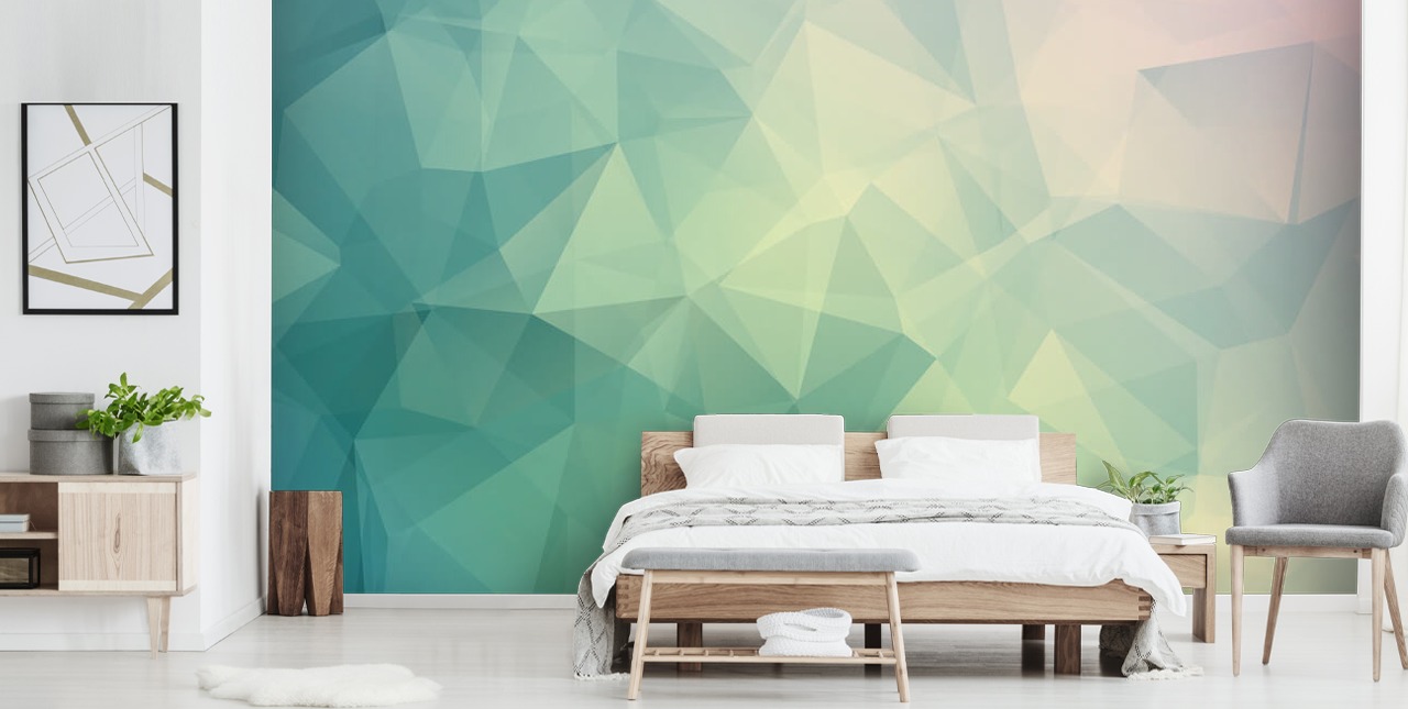 Driehoekige pastels behangmuurschildering van Wallsauce, brengt de geometrische look naar uw kamer, allemaal op maat gemaakt op maat