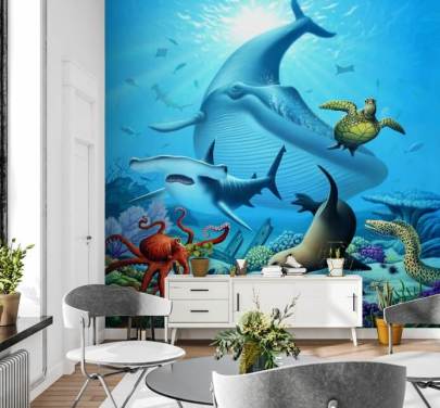 Breng de majesteit en sierlijkheid van de walvis in huis met een prachtige walvismuurschildering op maat. Deze reuzen van de oceaan kunnen elke ruimte een gevoel van rust en vrijheid geven en tegelijkertijd de ultieme kenmerkende muur creëren
