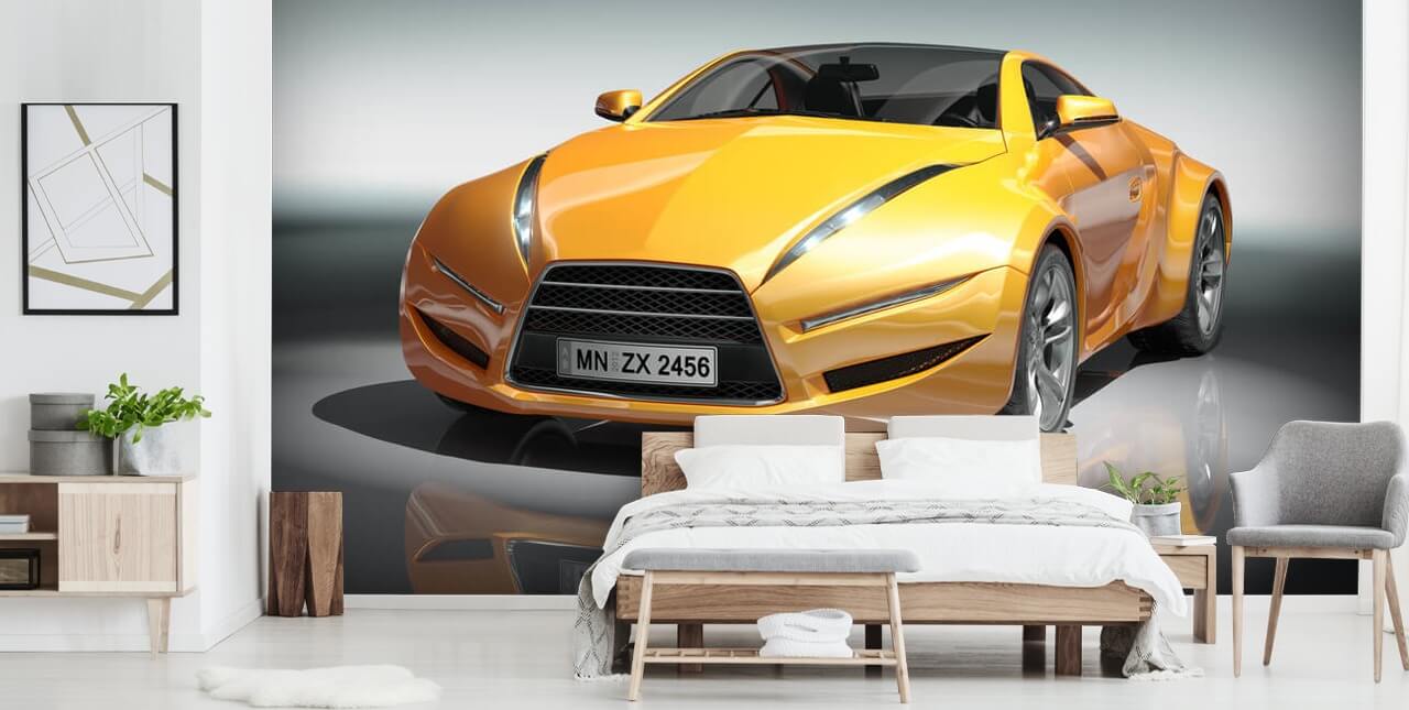 Installeer dit op maat gemaakte gele sportwagenbehang. Geleverd in panelen en geleverd met instructies.