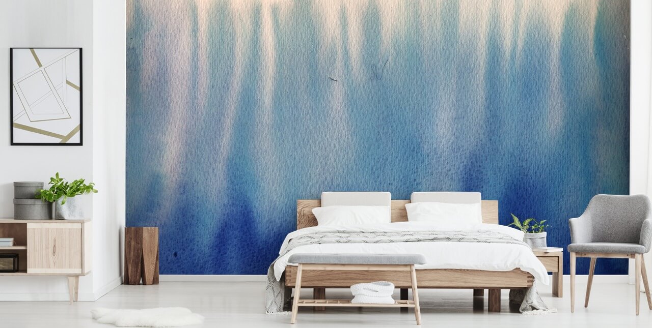 Prachtig blauw aquarelbehang dat je muur verandert in een echt gespreksonderwerp in je huis.