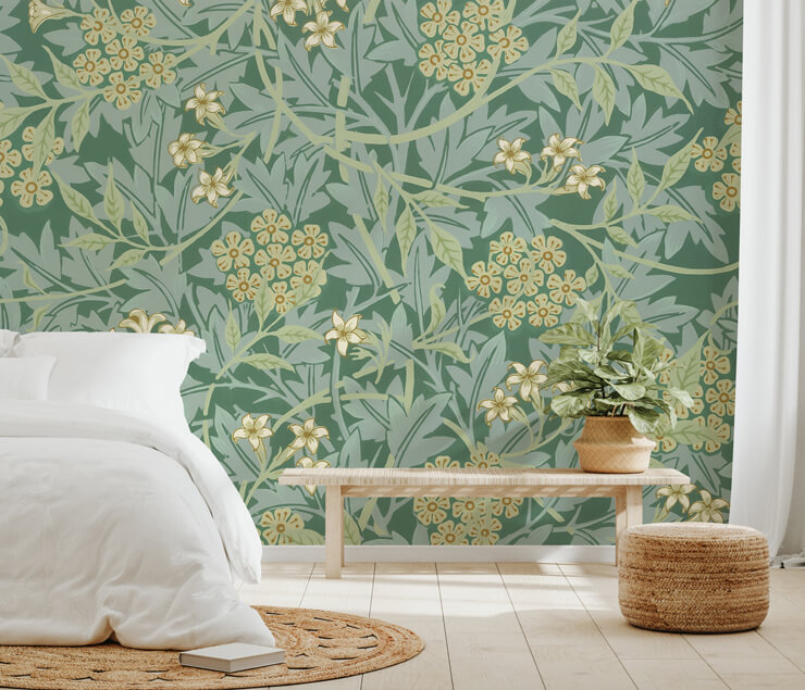 Det er helt sant. Uansett hvor du monterer et Morris-tapet, vil det se bra ut. Perfekt for å forsterke det antikke uttrykket i gangen i et hjem fra 1800-tallet sammen med flislagt gulv og en paneltrapp. Eller for å skape et vintage-look på hovedsoverommet i det nybygde huset ditt, slik som vårt Graften Pattern-design som vist i rommet over. Sammen med subtile grå og hvite sengetøy, ser dette grønne botaniske tapetet akkurat ut i dette nye hjemmet. Vi er sikre på at Morris ville godkjent det!