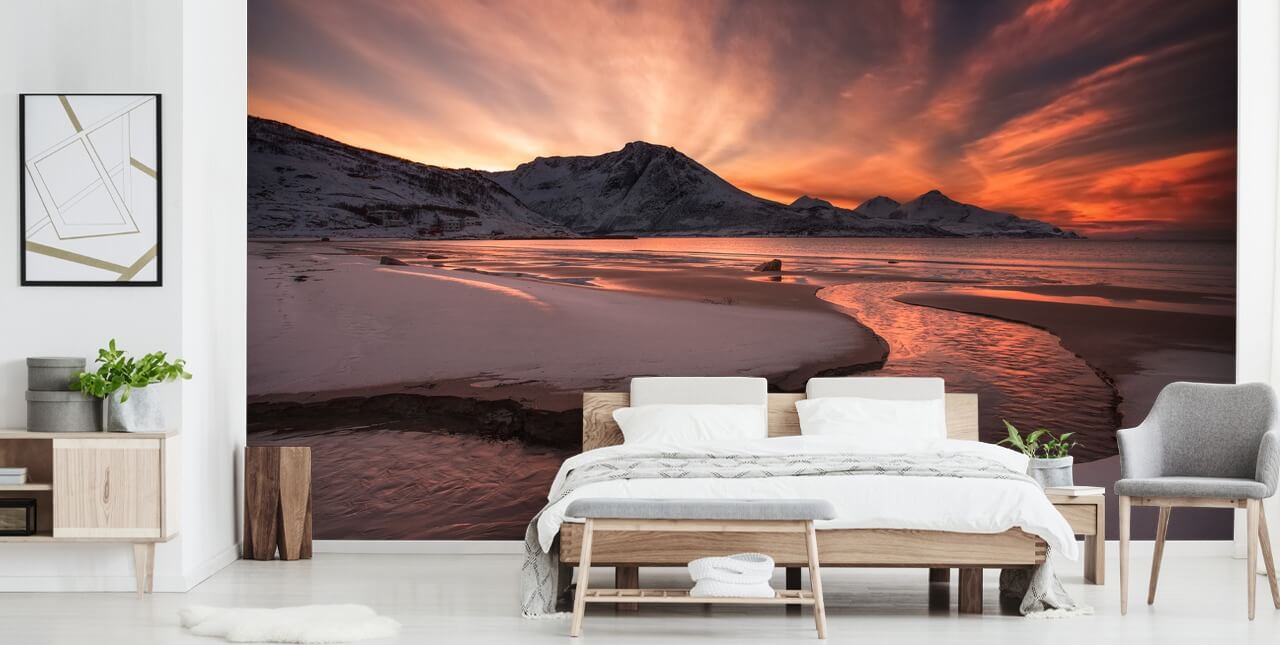 Hver tapet veggmaleri vi produserer er trykt på forespørsel til dine veggdimensjoner og er unik for deg. Vi holder ikke aksjer.