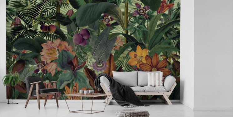 blågrønn og grønn tropisk tapet veggmaleri kalt Tropical Paradise av Andrea Haase for soverom og stuer